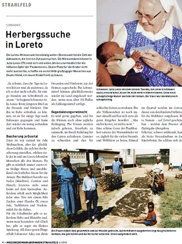 Drewer. Wenn man Dominikaner-Schwester Julia Lenze sieht, in ihrer Ruhe und Schlichtheit, würde sie niemand auf Anhieb mit Afrika in Verbindung bringen, oder gar an Bettler, Aids-Waisen, Dürreperioden oder gefährliche Tiere denken.